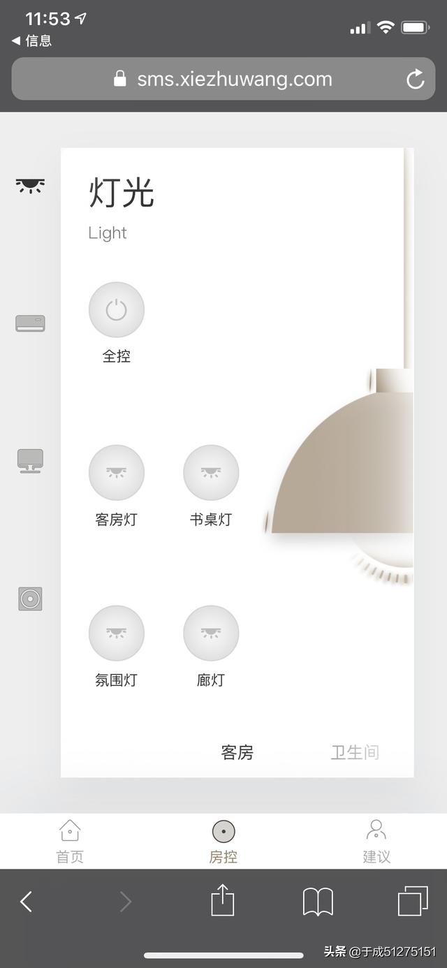 如何看待当下的智能家居行业?前几年互联网全社会大规模推广,智能手机连接了每个人的生活,吃穿住行,下一步社会生活会进一步向物联网方向渗透,链接万物是新方向,智能家居,车联网,ai都是这个范围,这是我在一家智能酒店留下的一个智能遥控的界面,未来家庭也会是这样,当然要比这个更智能更丰富再有机会进入千家万户